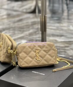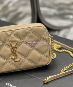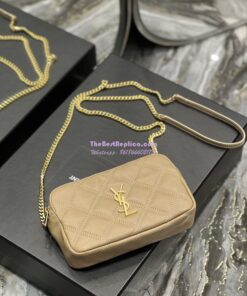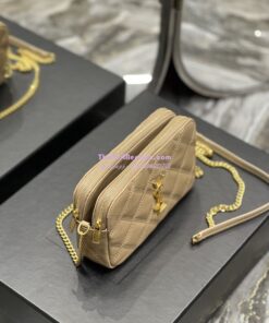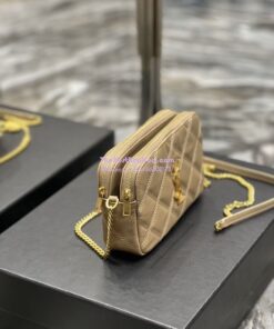 Replica Saint Laurent YSL Becky Double-Zip Pouch in Quilted Lambskin 608941 Beige