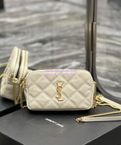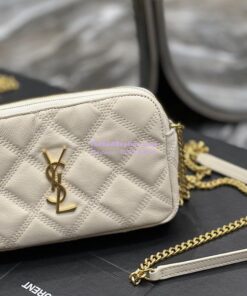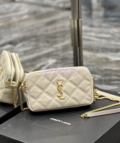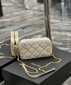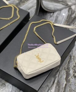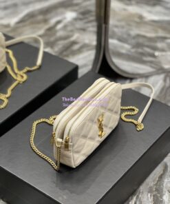 Replica Saint Laurent YSL Becky Double-Zip Pouch in Quilted Lambskin 608941 White