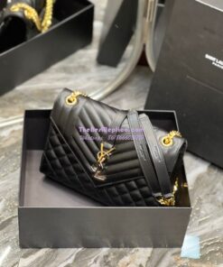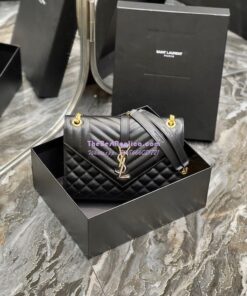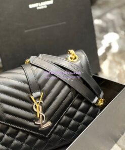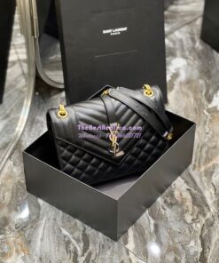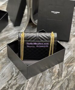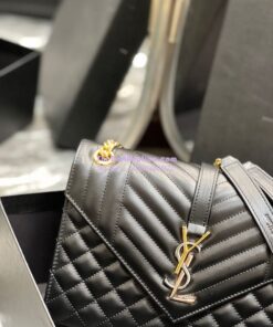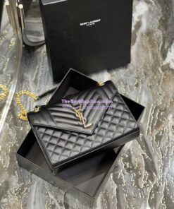 Replica Saint Laurent YSL Envelope Medium Bag In Supple Matelassé Leather 600185 Black Tri-Tone Logo