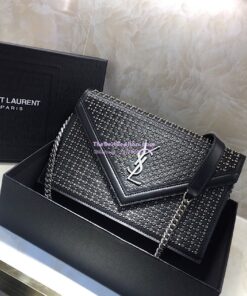 Replica Saint Laurent YSL Le Sept Stud Chain Bag in black leather