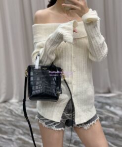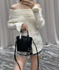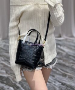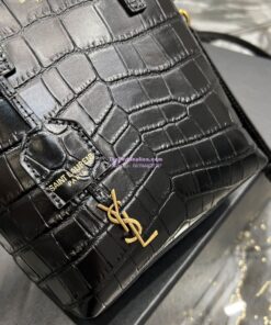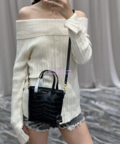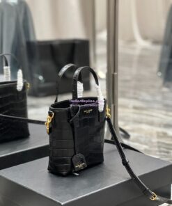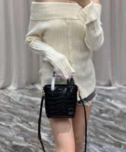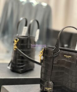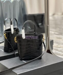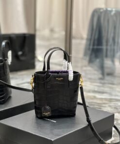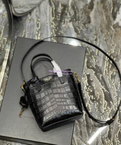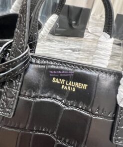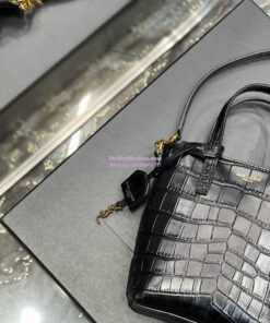 Replica Saint Laurent YSL Mini Toy Shopping Saint Laurent in Crocodile-Embossed Leather Black