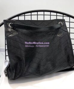 Replica Saint Laurent YSL Niki Medium Shopping Bag In Crinkled Vintage Leather 577999 Black