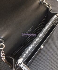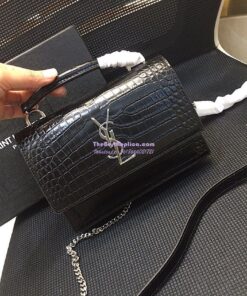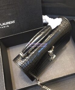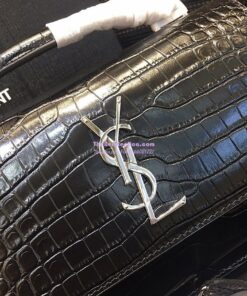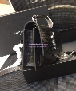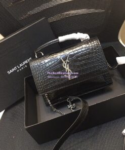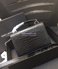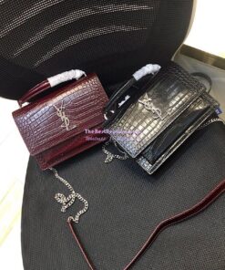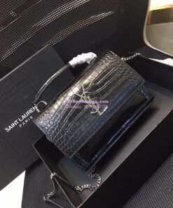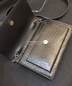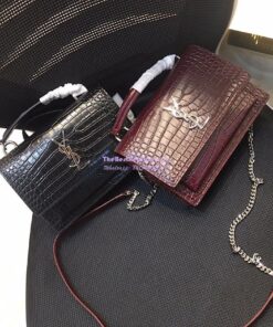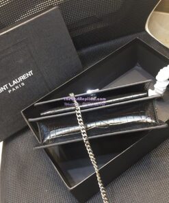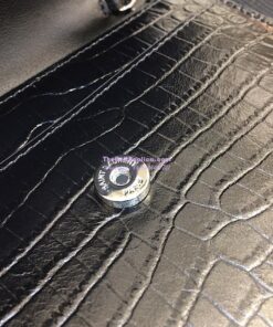 Replica Saint Laurent YSL Sunset Chain Wallet In Shiny Crocodile-embossed Leather 533026 Black