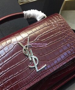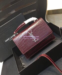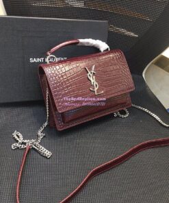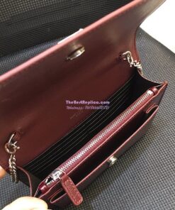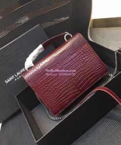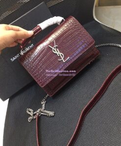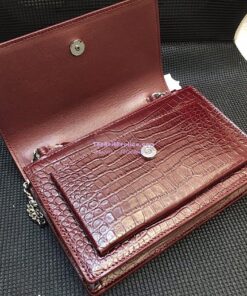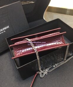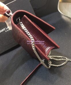 Replica Saint Laurent YSL Sunset Chain Wallet In Shiny Crocodile-embossed Leather 533026 Wine