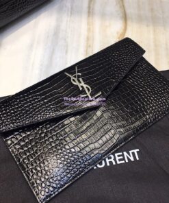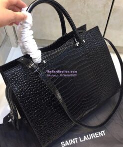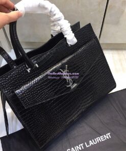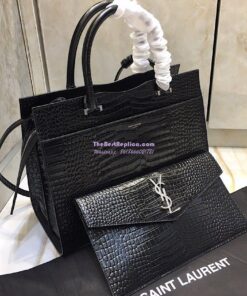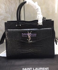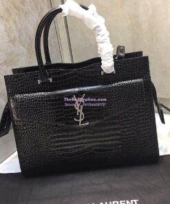 Replica Saint Laurent YSL Uptown Medium Tote In Shiny Crocodile-embossed Leather 557653 Black