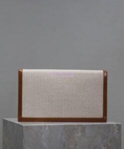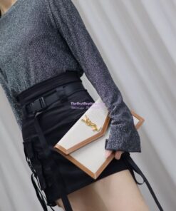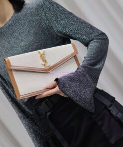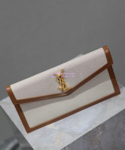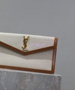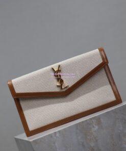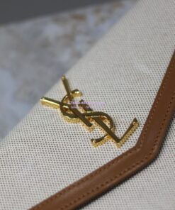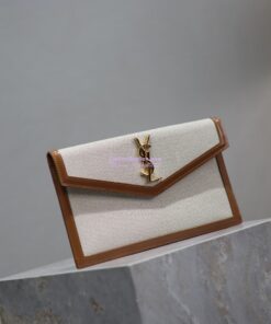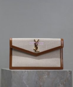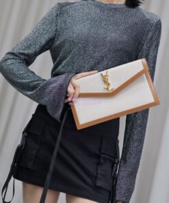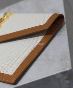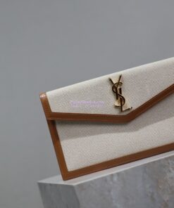Replica Saint Laurent YSL Uptown Pouch in Canvas and Smooth Leather Beige