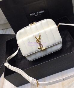 Replica Saint Laurent YSL Vicky Camera Bag In Quilted Lambskin 555052 White