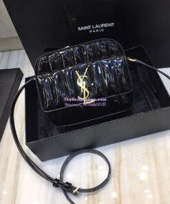 Replica Saint Laurent YSL Vicky Camera Bag In Quilted Patent Leather 555052 Black