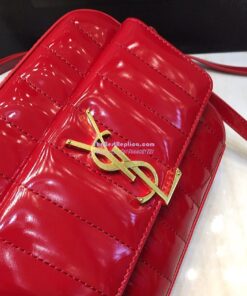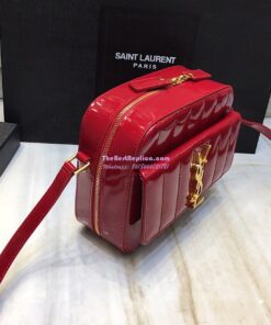 Replica Saint Laurent YSL Vicky Camera Bag In Quilted Patent Leather 555052 Red