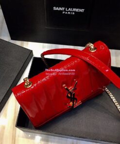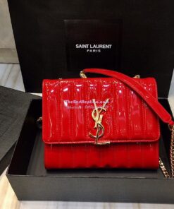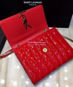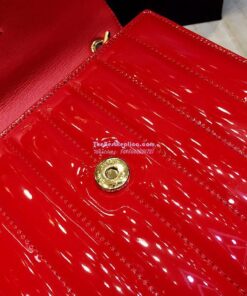 Replica Saint Laurent YSL Vicky Chain Wallet In Quilted Patent Leather 554125 Red
