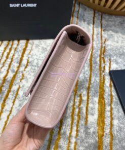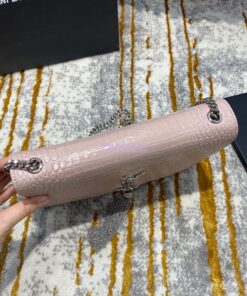 Replica YSL Classic Medium Kate Monogram Saint Laurent Tassel Satchel In Pink Crocodile Embossed Shiny Leather 354119