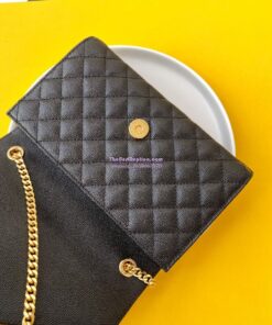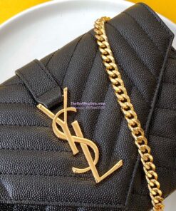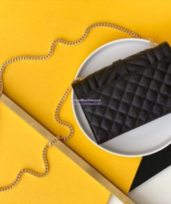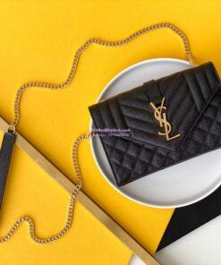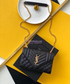 Replica YSL Envelope small bag in mix matelassé grain de poudre embossed leather 526286 black GHW