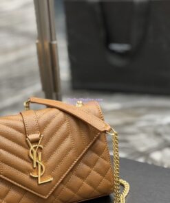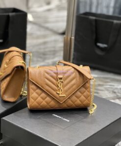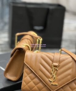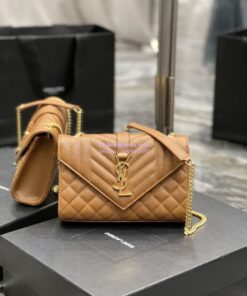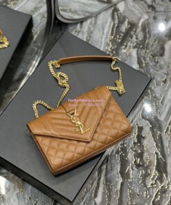 Replica Ysl Envelope Small Bag In Mix Matelasse Grain De Poudre Embossed Leather 526286 Caramel