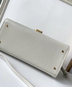 Replica YSL Replica Saint Laurent Cassandra Medium Bag In White Grained Leather for sale. The highly covetable Saint Laurent Cassandra bag combines grained leather with the signature YSL hardware that aptly functions as a puzzle-like clasp. Perfectly sized for dusk-to-dawn endeavours, the spacious interior keeps cards, phones and other evening essentials organised with its compartmentalised design. Carry it by the ladylike top handle or sling it over the shoulder with the chain strap.