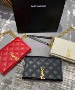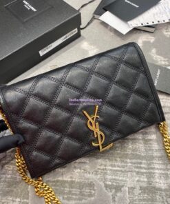 Replica YSL Saint Laurent Becky Chain Wallet In Diamond-quilted Lambskin 5850311 Black