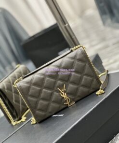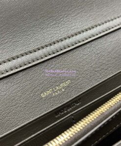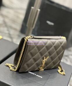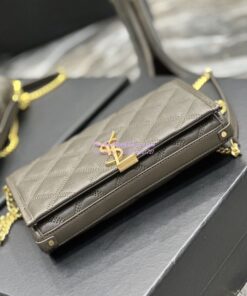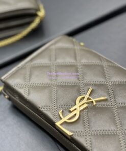 Replica YSL Saint Laurent Becky Chain Wallet In Diamond-quilted Lambskin 5850311 Grey Khaki