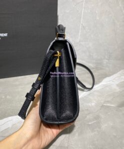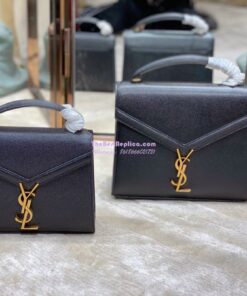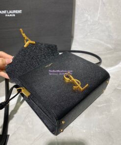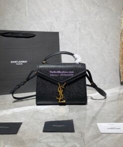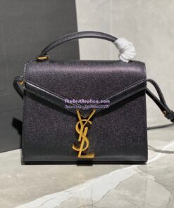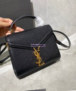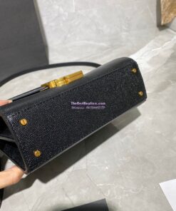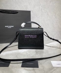 Replica YSL Saint Laurent Cassandra Mini Top Handle Bag In Grain De Poudre Embossed Leather 602716 Black