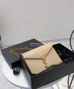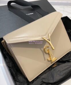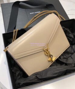 Replica YSL Saint Laurent Cassandra Monogram Clasp Bag In Smooth Leather Beige