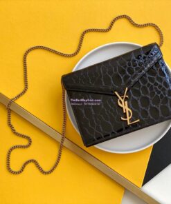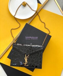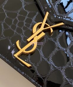 Replica YSL Saint Laurent Cassandra Monogram Clasp Bag In turtle Embossed Shiny Leather Black