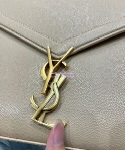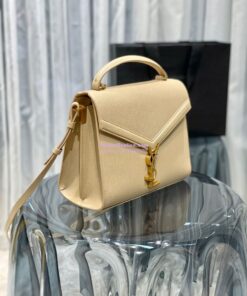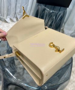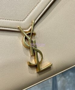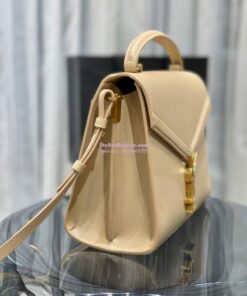 Replica YSL Saint Laurent Cassandra Top Handle Medium Bag In Grain De Poudre Leather Light Beige