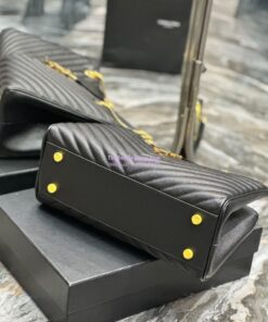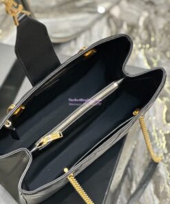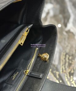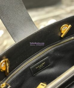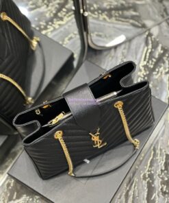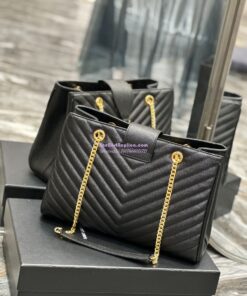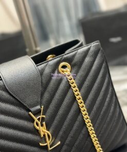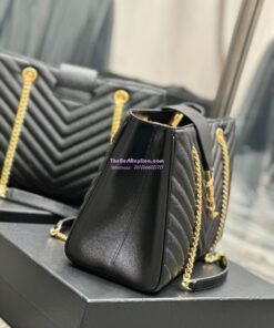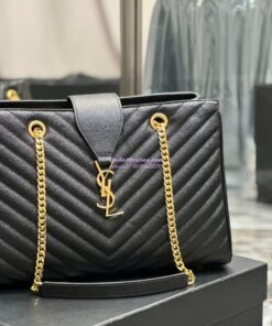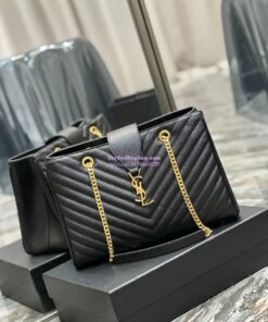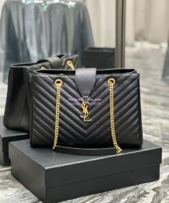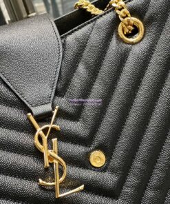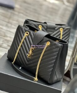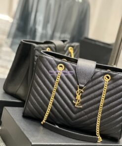 Replica YSL Saint Laurent Classic Chevron Quilted Monogram Shopping Bag in Grained Calfskin 668900 Black