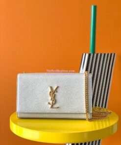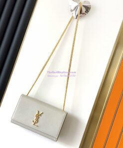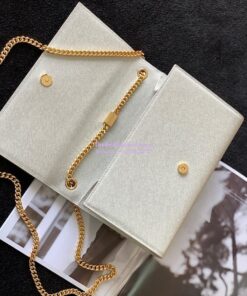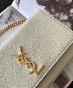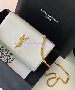 Replica YSL Saint Laurent Classic Medium Kate In Grained De Poudre Textured Leather White