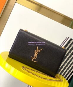 Replica YSL Saint Laurent Classic Medium Kate Satchel In Grained De Poudre Textured Leather Black