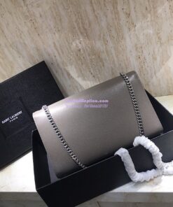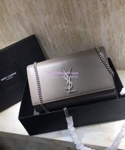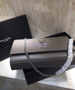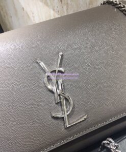 Replica YSL Saint Laurent Classic Medium Kate Satchel Silver Hardware In Grained De Poudre Textured Leather Grey