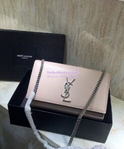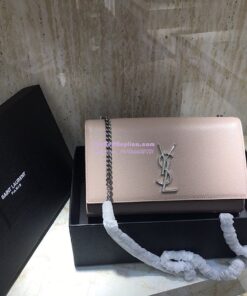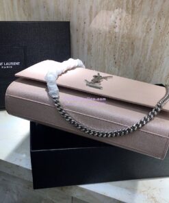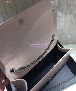 Replica YSL Saint Laurent Classic Medium Kate Silver Hardware In Grained De Poudre Textured Leather Powder Pink