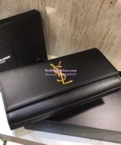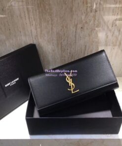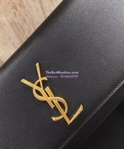 Replica YSL Saint Laurent Classic Monogram Saint Laurent Clutch In Black Grain De Poudre Textured Leather