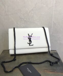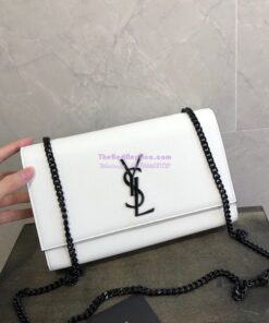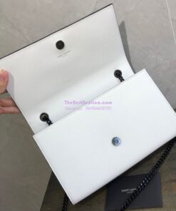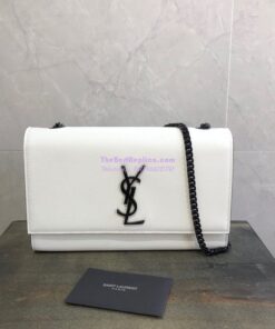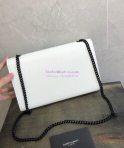 Replica YSL Saint Laurent Classic Monogram Satchel in Grain De Poudre Textured Leather White