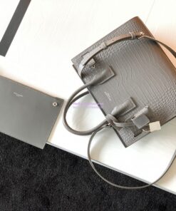 Replica YSL Saint Laurent Classic Sac De Jour Baby Nano In Embossed Crocodile Shiny Leather 421863 Grey