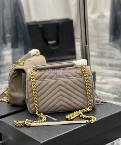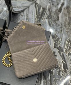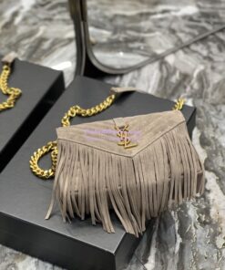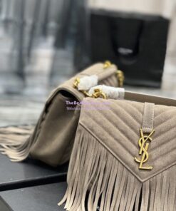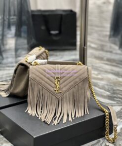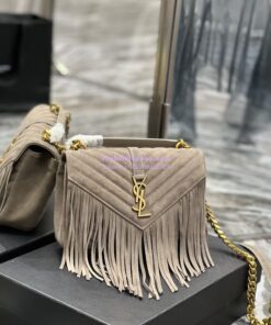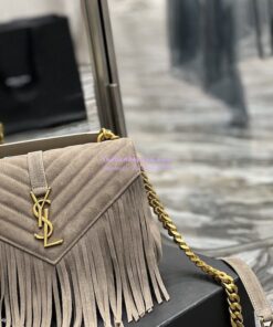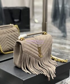 Replica YSL Saint Laurent College Medium Chain Bag In Light Suede With Fringes 531705 Dusty Grey