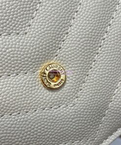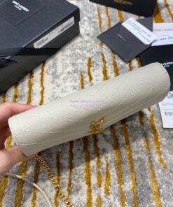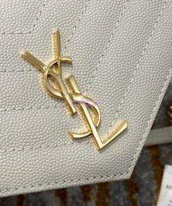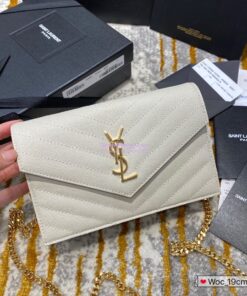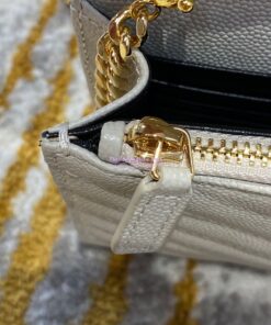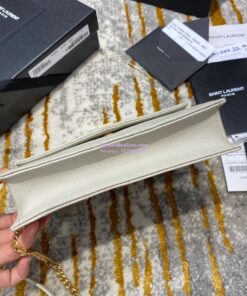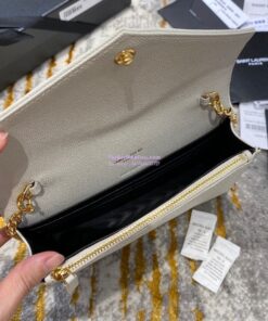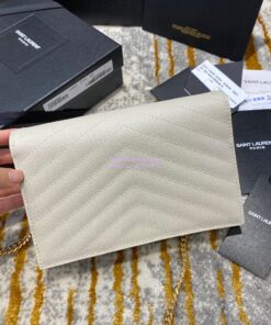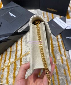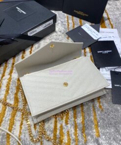 Replica YSL Saint Laurent Envelope Chain Wallet Grain De Poudre 393953 White in Gold Hardware
