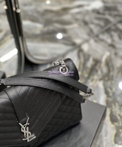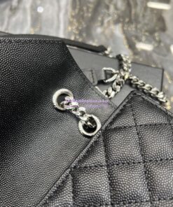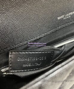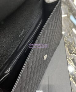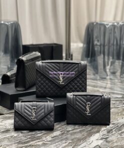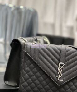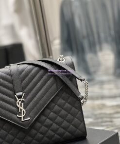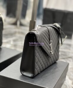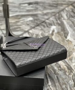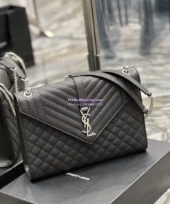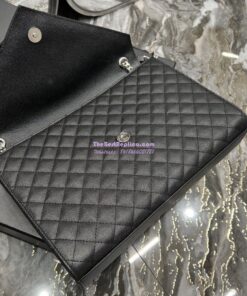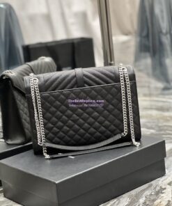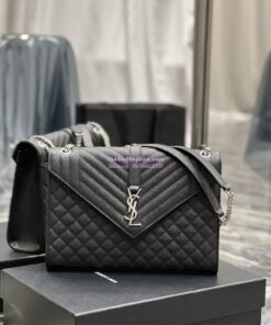 Replica YSL Saint Laurent Envelope Large Bag In Mix Matelasse Grain De Poudre Embossed Leather 487198 Black with Silver Hardware