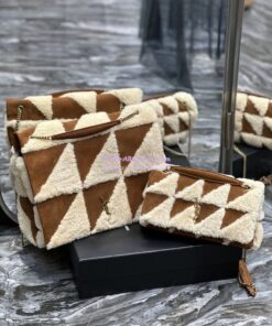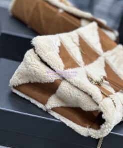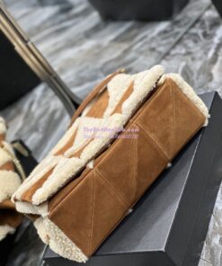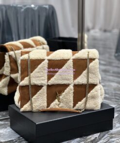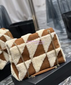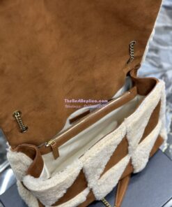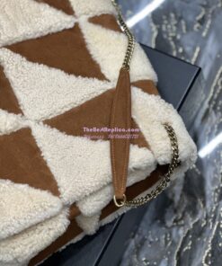 Replica YSL Saint Laurent Jamie Giant Chain Bag "Carré Rive Gauche" In Suede And Shearling Patchwork 712316 Natural Beige And Dark Cigar
