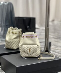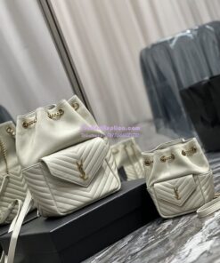 Replica YSL Saint Laurent Joe Mini Bucket Bag In Quilted Lambskin 7016311 Blanc