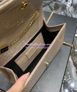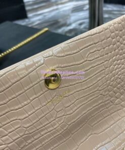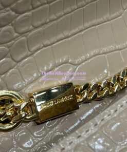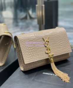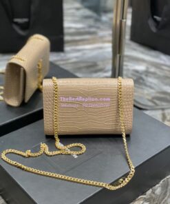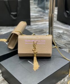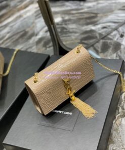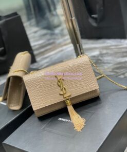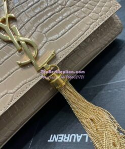 Replica YSL Saint Laurent Kate Chain Wallet With Tassel In Crocodile-embossed Shiny Leather 452159 Beige