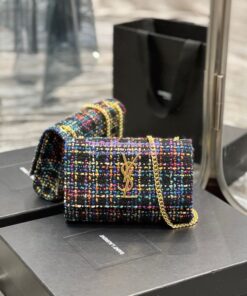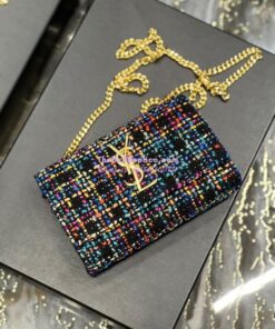 Replica YSL Saint Laurent Kate Chain Wallet With Tassel In Multicolour Tweed 452159