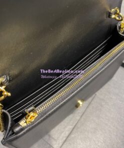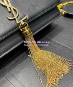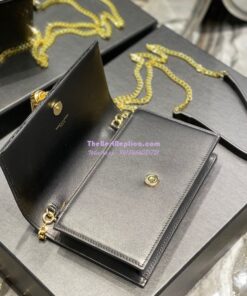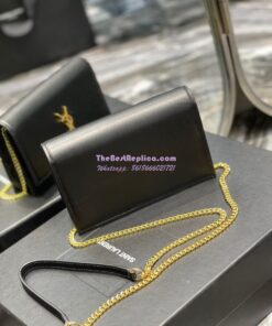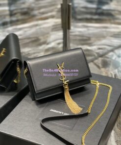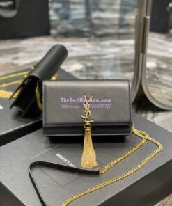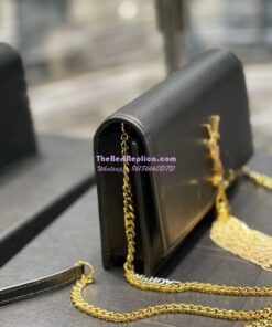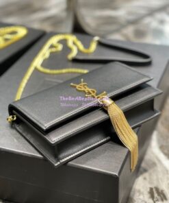 Replica YSL Saint Laurent Kate Chain Wallet With Tassel In Smooth Leather 452159 Black Gold Hardware