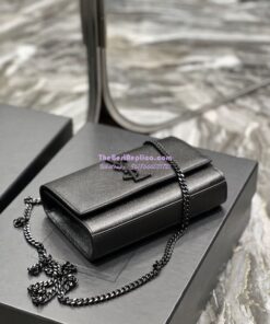 Replica YSL Saint Laurent Kate small chain bag in grain de poudre embossed leather 469390 Black All Black