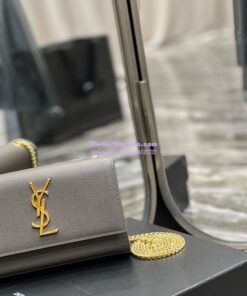 Replica YSL Saint Laurent Kate small chain bag in grain de poudre embossed leather 469390 Grey