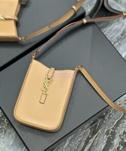 Replica YSL Saint Laurent Le 5 à 7 mini vertical in beige vegetable-tanned leather 735214
