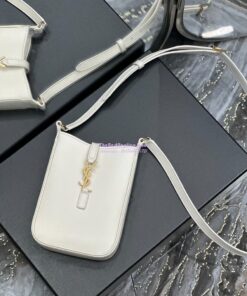 Replica YSL Saint Laurent Le 5 à 7 mini vertical in white vegetable-tanned leather 735214