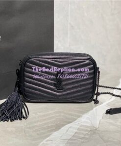 Replica YSL Saint Laurent Lou Mini Bag In Quilted Grain De Poudre Embossed Leather 6125791 All Black