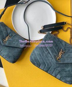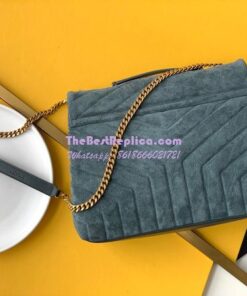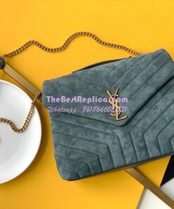 Replica YSL Saint Laurent LouLou Medium Bag in Y-Quilted Suede 5749461 Algae