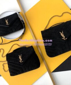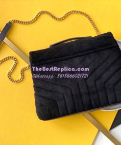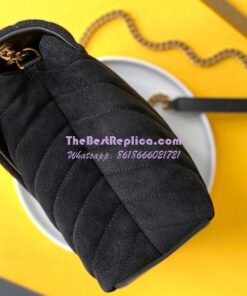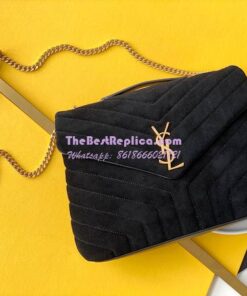 Replica YSL Saint Laurent LouLou Medium Bag in Y-Quilted Suede 5749461 Black
