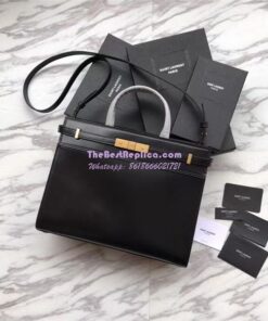 Replica YSL Saint Laurent Manhattan small shopping in black smooth leather
