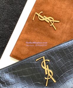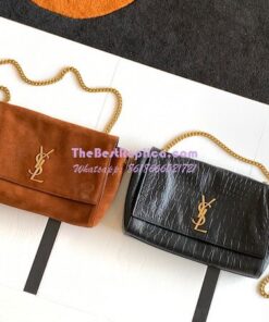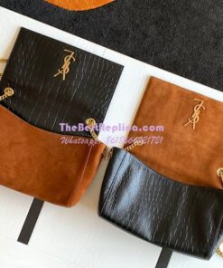 Replica YSL Saint Laurent Medium Kate Bag In Brown Suede And Black Crocodile-embossed Leather Reversible 553804