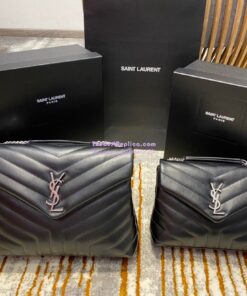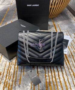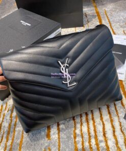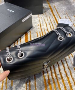 Replica YSL Saint Laurent Medium Loulou Bag In Black "Y" Matelassé Leather 459749 Silver Hardware